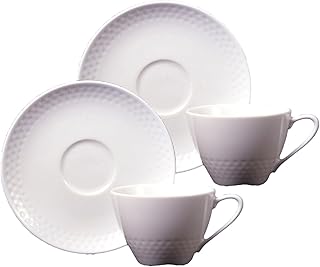 Noritake ノリタケ カップ & ソーサー ( ペアセット ) ( コーヒー ティー 兼用) 210cc リズモホワイト 電子レンジ対応 食洗機対応 2客 ファインポーセレン P5389L/1610