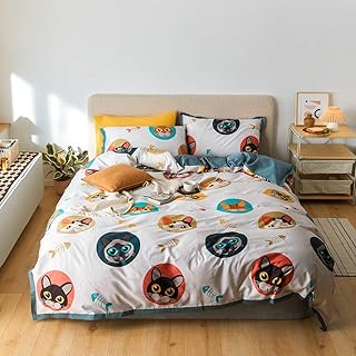 カートゥーンツインキュート 寝具カバーセット 子ども用 100%コットン リバーシブル 快適な3点セット 子ども用寝具布団カバー枕ケース 子ども用寝具セット Queen/Full グレー ORBT23-1Q