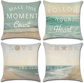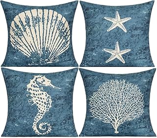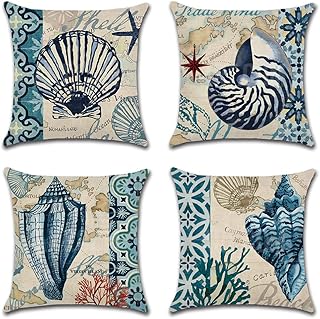 クッションカバー 4枚セット 北欧 海スタイル 海テーマ 装飾 45×45cm 高品質亜麻 シンプル 座布団カバーおしゃれ クラシック ソファ背当て 抱き枕 車用 インテリア 飾り 結婚祝い プレゼント 装飾枕カバー 部屋飾り (H, 45×45cm)