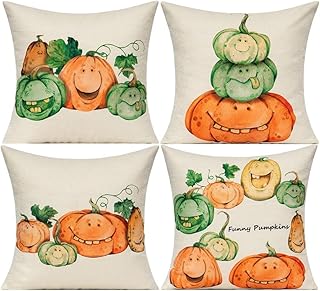 All Smiles クッションカバー かぼちゃ 万聖節 秋 45×45cm おしゃれ 北欧 4枚セット モダンクッション かわいい 面白い 雑貨 インテリア 飾り デザイン リネン製 車用 結婚祝い プレゼント