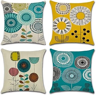 4枚セット,クッションカバー北欧 45x45cm おしゃれ 雑貨 ソファー背当て モダン デザイン かわいい リネン製 結婚祝い プレゼント 装飾 ,車用 インテリア 飾り枕カバー上質 (Geometric sunflower, 4枚セット,45x45cm)