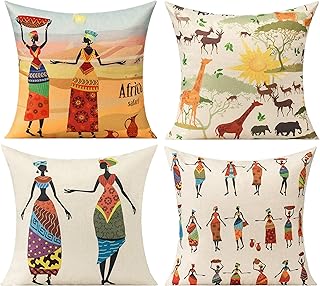 All Smiles クッションカバー アフリカ おしゃれ 北欧 雑貨 4枚セット 45×45cm モダンクッション かわいい デザイン インテリア 飾り 結婚祝い プレゼント