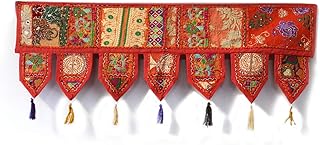 インディアン クラフト キャッスル コットン ヴィンテージ パッチワーク ドアハンギング バランス 窓 手刺繍 トーラン ボヘミアン 装飾 リビングルーム 壁 ホーム ハンドメイド ソーラナム バンダウォーデコレーション (オレンジ、1メートル)