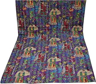 インディアンキング/ツイン ハンドメイド コットン ボヘミアン ブランケット ベッドカバー スロー エンジェルプリント ベッドスプレッド カンタキルト ベッド カンタ エスニック 装飾 作業キルト (パープル 108x108インチ)
