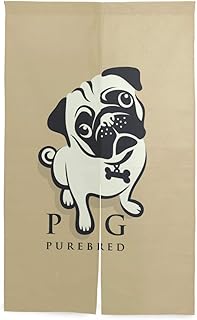 SoreSore(ソレソレ)のれん 目隠し 間仕切り ロング 暖簾 遮光 断熱 カーテン レトロ パグ いぬ 犬柄 かわいい 綿麻 玄関 キッチン 台所 着替え室 リビング 居酒屋 飲食店 インテリア おしゃれ かわいい 出入り口 幅86cm丈143cm