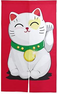 SoreSore(ソレソレ)のれん おしゃれ ロング 暖簾 遮光 断熱 目隠し 間仕切り カーテン 和風 招き猫 猫柄 赤 レッド かわいい 綿麻 玄関 キッチン 台所 着替え室 リビング 居酒屋 飲食店 インテリア かわいい 出入り口 幅86cm丈143cm