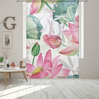 SoreSore(ソレソレ)レースカーテンミラーレースカーテン UVカット 小窓用カーテン 遮光 遮熱 断熱 出窓レースカーテン カーテン ドアカーテン ミラーカーテン 蓮 水彩 トンボ 花柄 エレガント かわいい 可愛い 目隠し おしゃれ かわいい 幅140CMx198CM 1枚