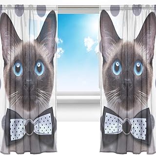 SoreSore(ソレソレ)レースカーテンミラーレースカーテン UVカット 遮光 遮熱 断熱 カーテン ドアカーテン ミラーカーテン ねこ 猫柄 ドット ホワイト 水玉 かわいい 目隠し おしゃれ かわいい 幅140CMx200CM 2枚組