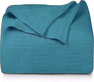 Utopia Bedding コットンクイーンブランケット ティール - 90x90インチ ベッド用ブランケット - 350GSM ソフトで通気性のあるブランケット