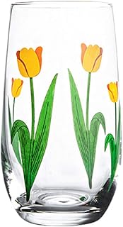 OUNONA ガラスコップ 耐熱ガラス クリアカップ 美しい 花プリント ティーカップ コーヒーカップ 透明カップ 400ml(3)