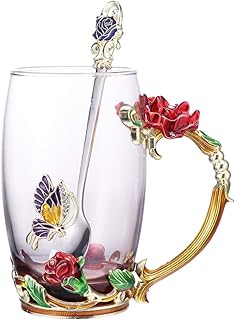 OUNONA マグカップ 耐熱ガラスカップ おしゃれ ティーカップ コーヒーマグカップ バラ 赤 スプーン付き