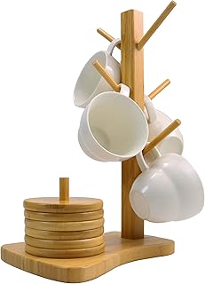 【天然素材】YOSHIKI良木工房 竹製マグカップツリー コースター セット カップスタンド カップラック 水切り コップ敷き マルチ機能 (YK-CTB6)