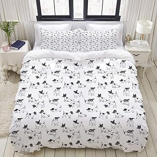 WOTAKA スケッチスタイル手描きジャックラッセルテリア落書きさまざまな立場でPurebred 布団カバー ピロケース 4 点セット ダブル 肌に優しい 和式洋式兼用 ボックスシーツ(ふとんカバー 190 x 210cm )