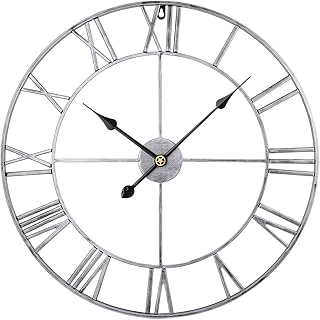 RuiyiF 24インチ メタル壁時計 ラージ 装飾的 素朴な農家 特大 サイレント チック 音なし 電池式 キッチン 寝室 リビングルーム 壁時計 ラージ 装飾(シルバー)