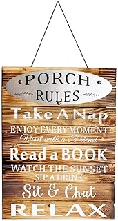 ヴィンテージ木製ポーチルールサイン 壁装飾 16インチx12インチ アンティーク調のホームウォールアート 素朴な農家 ホームポーチ 壁装飾