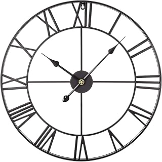 RuiyiF 24インチ メタル壁時計 ラージ 装飾的 素朴な農家 特大 サイレント チック 音なし 電池式 キッチン 寝室 リビングルーム 壁時計 ラージ 装飾用 (ブラック)