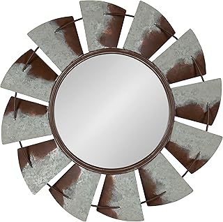 Kate and Laurel Millbrook 風車 素朴な農家 アンティーク調メタル壁ミラー 直径32インチ