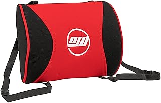 OpenWheeler Lumbar Support Lower Back Pillow Backrest with adjustable lastic straps. Breathable and washable fabric. Red/Black