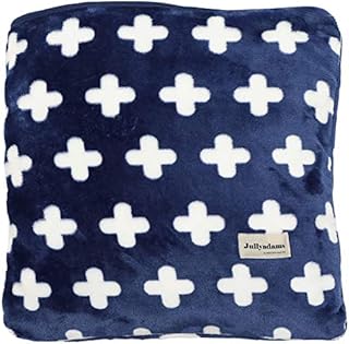 Jullyadams クッションにもなるブランケット セミダブルサイズ クロスxネイビー 軽くてあったかフランネル毛布