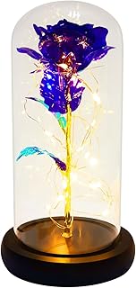 DUOSME 銀河ローズフラワーギフト 彼女への魅惑的なローズ・イン・ア・ガラスドーム 100言語 Love YouネックレスとLEDライトギフト 女性誕生日/クリスマス/記念日/バレンタインデーに (パープル)