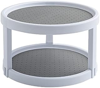 WWW 360°回転式 2層 丸型 大容量 省スペース ターンテーブル 回転台 キッチンラック 多目的棚 卓上回転トレー パントリー キッチン 浴室 台所 リビングルーム トレイ シンク下収納 化粧品/小物 収納具 (透明)