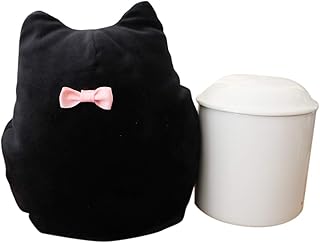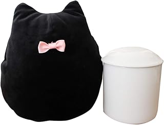 骨壷カバー 骨壷 セット もちもち 3.5寸 覆い袋+骨壷 耳とリボン付 ふわふわ 白並骨壺 (ブラック)